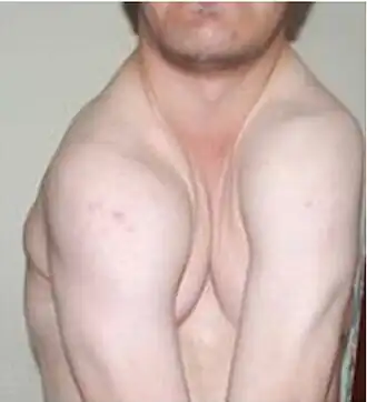 A disostose cleidocraniana (denominada também de displasia cleidocraniana, displasia osteodentinária, disostose mutacional e síndrome de Maric-Saintoné) é uma doença rara, que atinge 1/1.000.000 de indivíduos.[1] Essa patologia atinge diversos ossos e articulações do corpo, podendo causar na maioria dos casos deformações no desenvolvimento da clavícula, dos ossos do crânio, nos dentes e em diversos outros ossos. A ausência das clavículas, acomete cerca de 10% dos indivíduos, propiciando um pescoço alongado, permitindo a projeção dos ombros para a região medial do corpo, sem que seja provocado o menor desconforto.[2] Essa doença possui características hereditárias relacionadas a um gene autossômico dominante, contudo pode surgir devido a mutações espontâneas não possuindo predileção por gênero ou etnia. Se encontra de forma mais especifica no gene CBFA1 presente na banda 21 do braço P (curto) do cromossomo 6 conhecido como RUNX2 (fator de transcrição 2), sendo relatado como a origem da doença.[3]