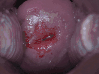 | NIC-1 mostrando um teste positivo de ácido acético do colo do útero | |