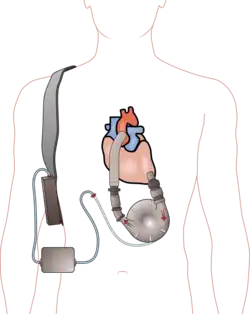 VADs são diferentes de corações artificiais, que são projetados para assumir todas as funções cardíacas, e geralmente requerem a remoção do coração do paciente. Além disso, VADs são projetados para ajudar o direito ventrículo esquerdo (do inglês right ventricular assist device, RVAD) ou do ventrículo esquerdo (do inglês left ventricular assist device, LVAD), ou para auxiliar ambos (BiVAD). O tipo de assistência ventricular dispositivo aplicado depende do tipo de male cardíaco. O LVAD é o mais utilizado, visto que o lado direito do coração, muitas vezes, é capaz de exercer suas funções. No entanto, se a resistência da artéria pulmonar, torna-se necessário também o uso do RVAD. Se ambos os ventrículos demandam auxílio, um BiVAD é normalmente escolhido, em vez do uso conjunto de LVAD e RVAD.