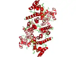 - ↑ Sadoulet-Puccio, H M; Rajala M, Kunkel L M (1997). «Dystrobrevin and dystrophin: an interaction through coiled-coil motifs». UNITED STATES. Proc. Natl. Acad. Sci. U.S.A. 94 (23): 12413–8. ISSN 0027-8424. PMC 24974