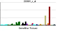 . PMID 7844150. doi:10.1083/jcb.128.3.363 - ↑ Ahn, A H; Freener C A, Gussoni E, Yoshida M, Ozawa E, Kunkel L M (1996). «The three human syntrophin genes are expressed in diverse tissues, have distinct chromosomal locations, and each bind to dystrophin and its relatives». UNITED STATES. J. Biol. Chem. 271 (5): 2724–30. ISSN 0021-9258. PMID 8576247. doi:10.1074/jbc.271.5.2724
