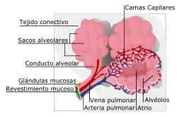 O interstício pulmonar é um tecido responsável pelas trocas gasosas e inclui o epitélio do alvéolo, vasos sanguíneos e membranas basais. Com a cicatrização (fibrose) se torna mais grosso e duro, incapaz de trocar gases eficientemente.