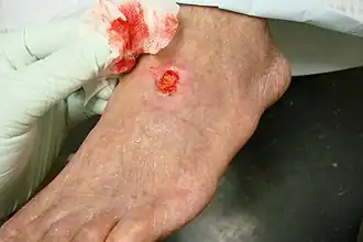 - Eritromelalgia - uma doença vascular periférica rara com sintomas que incluem dor em queimação, aumento da temperatura, eritema e inchaço que geralmente afetam as mãos e os pés.[17]