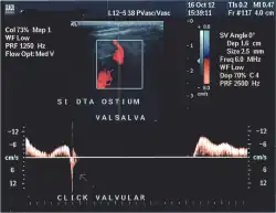 No estudo da crossa da grande safena é muito útil muito aconselhável utilizar a codificação a cores juntamente com o efeito Doppler antes, durante e após a manobra de Valsalva.