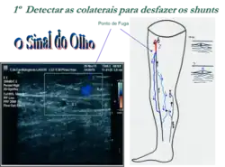 - se possível, como restabelecer a drenagem, mencionando quais as perfurantes funcionantes que permitem uma drenagem correta para o sistema venoso profundo, isto em vista de uma cirurgia conservadora do sistema venoso superficial.[34]
