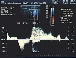 Esta tecnologia é largamente utilizada para confirmar os diagnósticos em patologia venosa. A qualidade de imagem necessária tornou-se possível com o desenvolvimento do Doppler. O desenvolvimento da técnica doppler conduziu à introdução da cor permitindo "visualizar" o fluxo sanguíneo num determinado sector da imagem e ter informações sobre a direção e velocidade desse mesmo fluxo. Trata-se de uma informação codificada na qual, por convenção, o fluxo que se dirige para a sonda aparece a vermelho e o fluxo que se afasta da sonda aparece a azul. Esta disposição de cores pode ser invertida e a gama de cores pode ser modificada no aparelho; seja como for, no ecrã aparecerá um retângulo vertical com as cores escolhidas no qual a superior será a cor do fluxo que se dirige para a sonda. Uma coloração uniforme do fluxo significa que estamos em presença de um fluxo laminar.[nota 3] No caso de existirem turbulências, várias colorações aparecerão, misturando amarelo,vermelho,verde e branco. Mudando sucessivamente o sector visualizado podemos adquirir uma informação importante sobre a velocidade, direção e características (laminar ou turbulento) do fluxo sanguíneo num determinado vaso.[9][10][11]