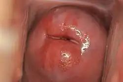 O diagnóstico é feito visualizando o colo do útero (colposcopia) e coletando uma amostra para analisar ao microscópio (biópsia). Frequentemente é um achado acidental em um papanicolau com colposcopia anual. A biópsia serve para diferenciá-lo de um Câncer de colo do útero.[3]