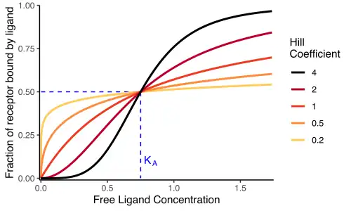 - ↑ Para maior clareza, este artigo utilizará a convenção da União Internacional de Farmacologia Básica e Clínica para distinguir entre a equação de Hill-Langmuir (para saturação do receptor) e a equação de Hill (para resposta tecidual).