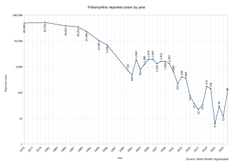 Em 1988, a Organização Mundial da Saúde (OMS), junto com o Rotary International, UNICEF e os Centros de Controle e Prevenção de Doenças (CDC) dos EUA, lançou a Iniciativa Global de Erradicação da Poliomielite (GPEI), com o objetivo de erradicar a pólio até o ano 2000. A iniciativa foi inspirada pelo compromisso do Rotary International em 1985 de arrecadar US$120 milhões para imunizar todas as crianças do mundo contra a doença.[82] O último caso de poliomielite por vírus selvagem nas Américas foi relatado no Peru, em agosto de 1991.[82]