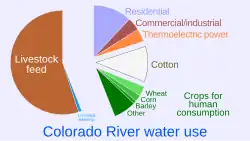 - 1 2 Shao, Elena (22 de maio de 2023). «The Colorado River Is Shrinking. See What's Using All the Water.». The New York Times. Arquivado do original em 23 de maio de 2023 ● Shao cites Richter, Brian D.; Bartak, Dominique; Cladwell, Peter; Davis, Kyle Frankel; et al. (Abril de 2020). «Water scarcity and fish imperilment driven by beef production». Nature Sustainability. 3 (4): 319–328. Bibcode:2020NatSu...3..319R. doi:10.1038/s41893-020-0483-z