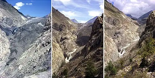 - ↑ Intergovernmental panel on climate change, «2.2.5.4 Mountain glaciers». www.grida.no. Consultado em 3 de fevereiro de 2007. Arquivado do original em 1 de setembro de 2014. Climate Change 2001 (Working Group I: The Scientific Basis)