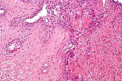 A esofagite consiste na inflamação da mucosa que recobre o interior do esôfago. Pode vir acompanhada de um estreitamento no interior do conduto (estenose esofágica).