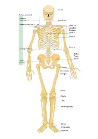 O esqueleto humano é uma das estruturas internas do corpo humano. É formado pelos ossos e tem como função principal proteger determinados órgãos vitais como o encéfalo, que é protegido pelo crânio, e também os pulmões e o coração, que são protegidos pelas costelas e pelo esterno, e servem também para armazenar gordura e minerais, ajudar com os movimentos do corpo e sustentar o organismo. Os ossos também armazenam células sanguíneas.
