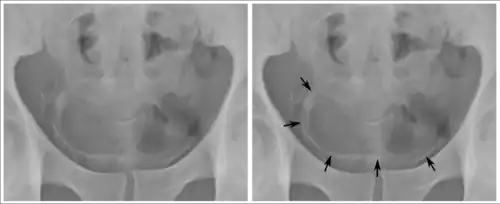 - Sangue na urina - o sangue geralmente é visto no final do jato urinário (sintoma mais comum)[21]