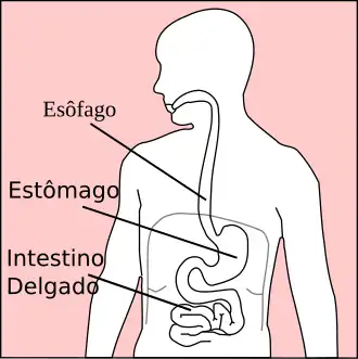 O estômago é um órgão presente no tubo digestivo, situado logo abaixo do diafragma, acima do pâncreas, mais precisamente entre o esôfago e o duodeno. Nele, os alimentos são pré-digeridos e esterilizados, a fim de seguirem para o intestino, onde são absorvidos.
