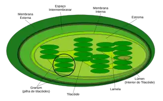 O estroma também pode ser considerado a parte gel do cloroplasto, onde ocorre a fase química da fotossíntese. O estroma existe no interior dos cloroplastos, sendo uma matriz amorfa, rica em enzimas solúveis, incluindo as responsáveis pelas reações da fase bioquímica da fotossíntese. Também são encontrados no estroma os plastoglóbulos, grãos de amido, fitoferritina, plastorribossomos e moléculas de DNA.