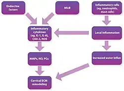 Mais informações: Vias de sinalização que regulam o amadurecimento cervical humano em partos prematuros e a termo[6]