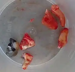 • Anestesia por infiltração – uma injeção contendo anestésico local é administrada na gengiva junto ao ápice da raiz do dente a ser extraído[3]. Isso permite que o anestésico local penetre através do osso, eventualmente alcançando o feixe nervoso do dente a ser extraído.