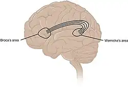 Evidências indicam um papel do fascículo arqueado no uso da linguagem é melhor representada pela afasia associativa, causada por um dano ao lóbulo parietal inferior que se estende para a substância branca subcortical e danifica o fascículo arqueado.[7] Este tipo de afasia inibe o paciente de repetir sons desconhecidos. Em 2005, um estudo realizado por Catani, Jones e Ffytche forneceu a primeira evidência anatômica para a presença de duas vias entre a área de Wernicke e a área de Broca.[8][9]
