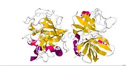 - ↑ Narayana SV, Carson M, el-Kabbani O, Kilpatrick JM, Moore D, Chen X, Bugg CE, Volanakis JE, DeLucas LJ (1994). «Structure of human factor D. A complement system protein at 2.0 A resolution». Journal of Molecular Biology. 235 (2): 695–708. PMID 8289289. doi:10.1006/jmbi.1994.1021