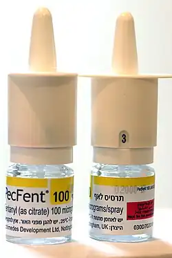 - ↑ &NA; (outubro de 2008). «Sublingual fentanyl tablet approved in the UK.». Inpharma Weekly (1658). 18 páginas. ISSN 1173-8324. doi:10.2165/00128413-200816580-00049. Consultado em 15 de maio de 2021