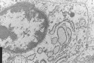 | Microscopia eletrônica de um fibrossarcoma. | |
