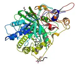 - ↑ Zhang J, Frerman FE, Kim JJ (2006). «Structure of electron transfer flavoprotein-ubiquinone oxidoreductase and electron transfer to the mitochondrial ubiquinone pool». Proc. Natl. Acad. Sci. U.S.A. 103 (44): 16212–7. PMID 17050691. doi:10.1073/pnas.0604567103