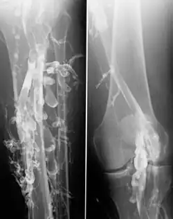 Era um exame usado para diagnosticar trombose venosa profunda, porém atualmente já não é usado para este fim pois a Ecografia e o doppler vieram facilitar o diagnóstico pela precisão, conforto para o doente e menor custo. Pode eventualmente ser usado para fins de investigação ou em certos casos de malformações venosas.[1]