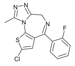| Nome IUPAC | 2-chloro-4-(2-fluorophenyl)-9-methyl-4H-thieno[3,2-f] [1,2,4]triazolo[4,3-a] [1,4]diazepine | ||||||||
