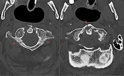- ↑ Gehweiler JA, Daffner RH, Roberts L (1983). «Malformations of the atlas vertebra simulating the Jefferson fracture». AJR Am J Roentgenol. 140 (6): 1083–6. PMID 6602470