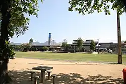 A ampliação destas atividades necessitou também a expansão da infraestrutura, com a construção de nova cavalariças e pavilhões. Entre estas construções estão o Pavilhão de Química, no qual se encontravam os laboratórios de química e de micologia, e o Serviço de Medicamentos Oficiais.[56] Nesta época foi concluída também a construção do Hospital de Manguinhos, idealizado por Oswaldo Cruz e batizado em sua homenagem.[57] Este hospital foi criado com para estudar doenças contagiosas e realizar o tratamento de pacientes, tendo papel importante na assistência a pacientes durante as epidemias de varíola, em 1925-26, e de febre amarela, em 1928-29.[55] Em 1940, o hospital foi renomeado para Hospital Evandro Chagas, em homenagem ao então diretor Evandro Chagas.[58]
