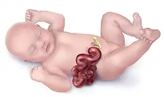 - ↑ Santiago-Munoz PC, McIntire DD, Barber RG, Megison SM, Twickler DM, Dashe JS (2007). "Outcomes of pregnancies with fetal gastroschisis". Obstet Gynecol 110 (3): 663–8. doi:10.1097/01.AOG.0000277264.63736.7e. PMID 17766615.