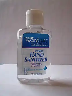 - ↑ «hand sanitizer - definition of hand sanitizer in English | Oxford Dictionaries». Oxford Dictionaries | English. Consultado em 12 de julho de 2017. Cópia arquivada em 18 de setembro de 2017