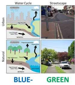 De acordo com a Organização de Pesquisa Científica e Industrial da Comunidade Australiana (CSIRO), o gerenciamento integrado da água urbana exige o gerenciamento do ciclo da água urbana em coordenação com o ciclo hidrológico natural, que é significativamente alterado por paisagens urbanas e sua relação com a crescente demanda. Em condições naturais, as entradas de água em qualquer ponto do sistema são a precipitação e os fluxos superficiais; já as saídas ocorrem por fluxos superficiais, evapotranspiração e recarga de aquíferos. A introdução de grandes volumes de água canalizada com a mudança para um ambiente urbano e a criação de vastas áreas impermeáveis impactam fortemente o balanço hídrico, aumentando os influxos e alterando drasticamente os componentes de saída.[2]