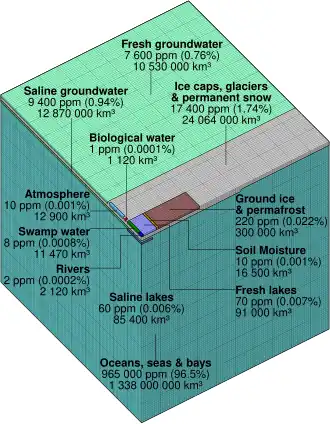- ↑ Earth's water distribution - US Geological Survey (em inglês)
