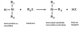 Alguns exemplos são a síntese de éteres (síntese de Williamson) a partir de álcoois e haletos de alquilas, a alquilação de aminas e a síntese malônica.