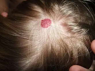 Muito comum em crianças e adolescentes, aparecendo em 10 a 12% dos bebês, especialmente os que nasceram com menos de 1 kg (30%). É cerca de 3 vezes mais comum em meninas e em caucasianos (brancos). Na maior parte das vezes ocorre na pele e as regiões da cabeça (60%) e tronco (25%) são os mais afetadas. Em 80% dos casos possui apenas uma lesão. Começa com protuberâncias rosadas, que crescem ficando mais vermelhas ou roxas que podem evoluir para um cinza pálido.[2]