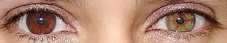 Heterocromia do Grego antigo: ἕτερος, héteros que significa "diferente" e χρώμα, chróma que significa "cor".[4][5]
