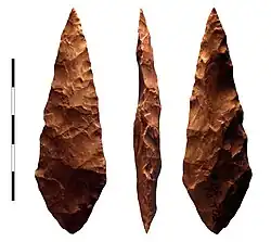 - ↑ Soressi M. (2005) Late Mousterian lithic technology. Its implications for the pace of the emergence of behavioural modernity and the relationship between behavioural modernity and biological modernity, pp. 389–417 in L. Backwell et F. d'Errico (eds.) From Tools to Symbols, Johannesburg: University of Witswatersand Press. ISBN 1868144178.