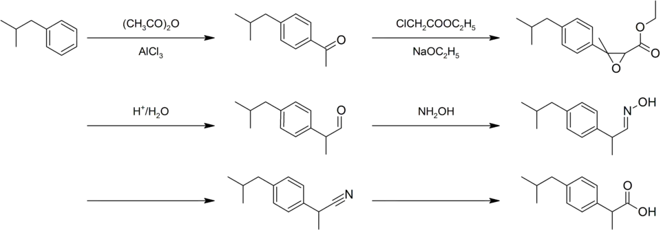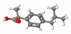 | Nome IUPAC | Ácido (RS)-2-(4-(2-metilpropil)fenil)propanoico, ácido 2-(4-isobutilfenil)propanoico, ácido 2-(4-isobutilfenil)propiônico | ||||||||||||||||||||