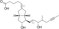 | Nome IUPAC | 5-{(E)-(1S,5S,6R,7R)-7-hydroxy-6[(E)-(3S, 4RS)-3-hydroxy-4-methyl-1-octen-6-inyl]-bi-cyclo[3.3.0]octan-3-ylidene}pentanoic acid | ||||||||