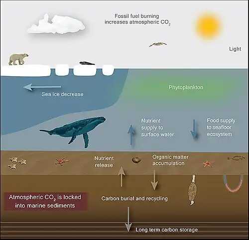 Modified text was copied from this source, which is available under a Creative Commons Attribution 4.0 International License. - ↑ Faust, Johan C.; März, Christian; Henley, Sian F. (2019). «The Carbon Story of a Melting Arctic». Frontiers for Young Minds. 7. doi:10.3389/frym.2019.00136