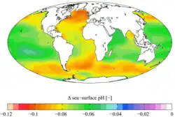 - ↑ Bopp, L., Resplandy, L., Orr, J. C., Doney, S. C., Dunne, J. P., Gehlen, M., Halloran, P., Heinze, C., Ilyina, T., Seferian, R. and Tjiputra, J. (2013) "Multiple stressors of ocean ecosystems in the 21st century: projections with CMIP5 models". Biogeosciences, 10: 6225–6245. doi:10.5194/bg-10-6225-2013.