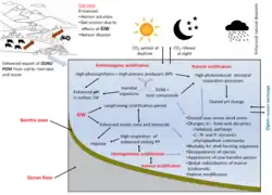 - ↑ Gruber, Nicolas. "Warming up, turning sour, losing breath: ocean biogeochemistry under global change". Philosophical Transactions of the Royal Society of London A: Mathematical, Physical and Engineering Sciences 369.1943 (2011): 1980–1996.