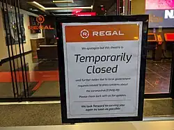 A pandemia de coronavírus 2019-2020 impactou de forma significativa a indústria cinematográfica, causando efeitos em diferentes segmentos artísticos. Impactou também os cinemas locais, que suspenderam suas operações,[1] e prometeram a devolução do dinheiro pago pelos ingressos comprados antecipadamente, como foi o caso da Cinemark[2] e Centerplex.[3]