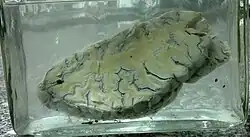 | Corte do cérebro [ostrando um infarto cerebral hemisfério direito (lado esquerdo da imagem). | |
