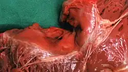 - Endocardite infecciosa: O uso de drogas intravenosas, neoplasias, alcoolismo, queimaduras extensas, cateteres de demora infectados e deficiência imunitária causam infecção da válvula. O abcesso anular é comum.