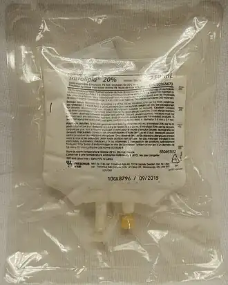 | Emulsão de lípidos a 20% geralmente usada no tratamento de intoxicações por bloqueadores dos canais de cálcio | |