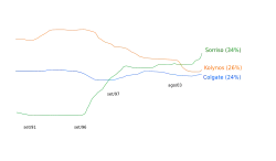 O Top of Mind 2002 já sinalizava a alteração, com empate técnico entra as duas marcas, desempatadas pelo conceito de "awareness" (lembrança da marca), um dos itens que pontua esta pesquisa. Os dados da pesquisa mostravam uma marca de 32% de lembrança para a Sorriso e 30% para a Kolynos.