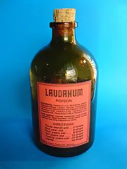O láudano foi utilizado até o início do século XX para tratar todo tipo de dor ou mal-estar.[3][2]